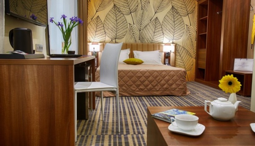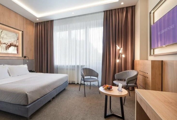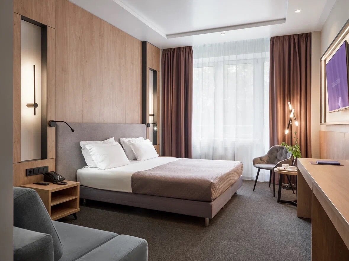 Да можно, на 1 этаже в номерах категории Стандарт, Супериор и Делюкс. В номерах других категорий запрещено. Разрешено проживание домашних животных — собак декоративных пород весом до 6 кг либо до 30 см в холке, доплата 2000 руб/сутки.