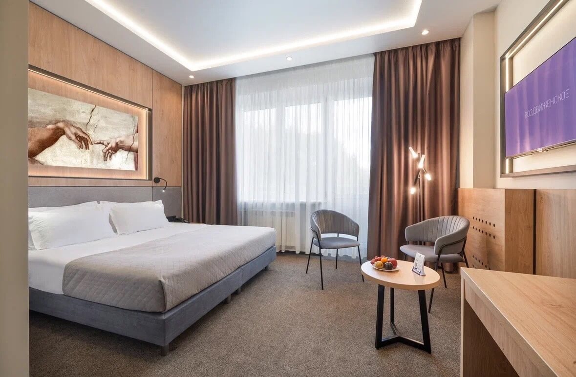 Парк-отель «Воздвиженское» введен в эксплуатацию в 2012 году. Жилая часть отеля имеет два крыла, соединенных между собой зоной ресепшен: 5-этажный с лифтом корпус «Запад» и 4-этажный с лифтом- «Восток». В обоих корпусах можно разместить до 600 гостей одновременно. К услугам гостей предлагаются 235 комфортабельных номеров с дизайнерским интерьером в стиле NeoArt. Также, на территории имеется корпус Лесной и эко-домики для любителей уединения.