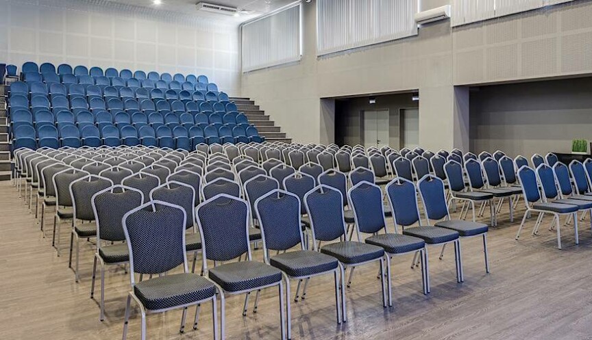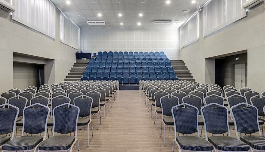 Он идеально подходит для проведения больших презентаций, лекций, тренингов и концертов.