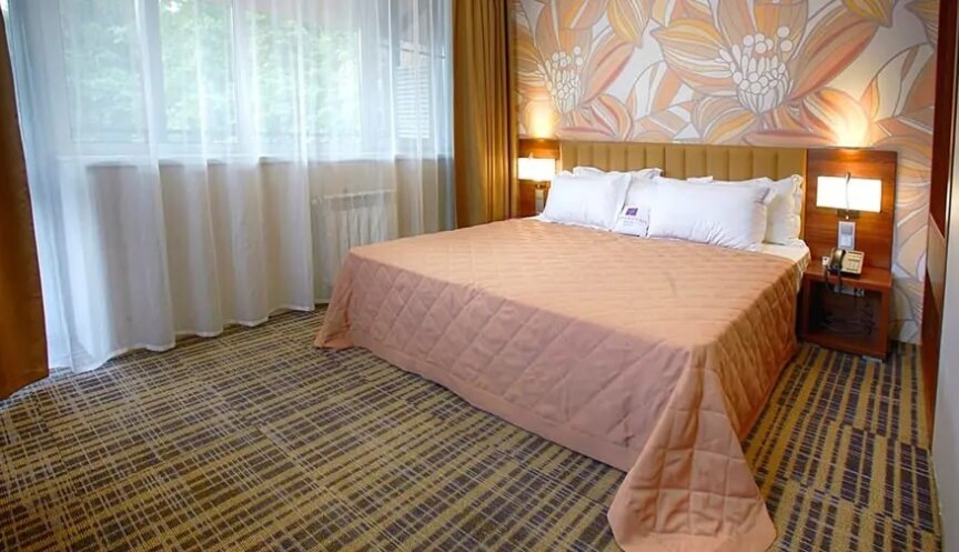 Да можно, на 1 этаже в номерах категории Стандарт, Супериор и Делюкс. В номерах других категорий запрещено. Разрешено проживание домашних животных — собак декоративных пород весом до 6 кг либо до 30 см в холке, доплата 2000 руб/сутки.