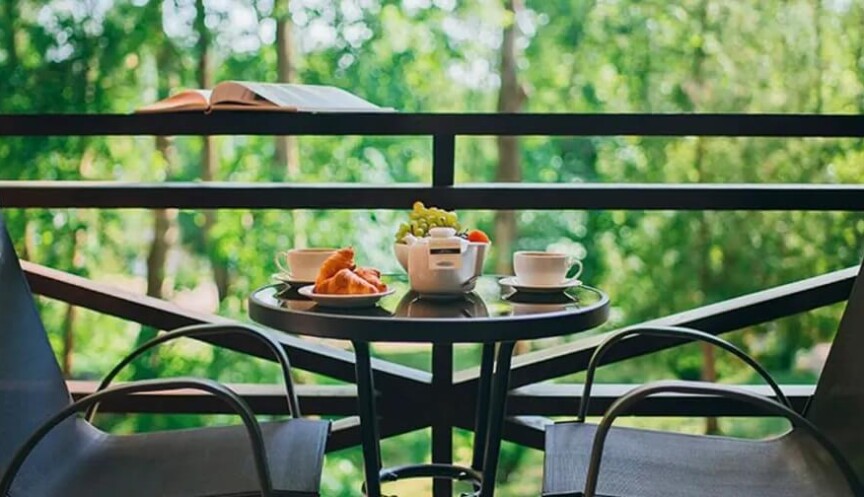 Просторная терраса с видом на каскадные пруды и парк, пение птиц по утрам и мягкие лучи закатного солнца, пробивающиеся сквозь ветви вековых деревьев, создают атмосферу изысканного отдыха.